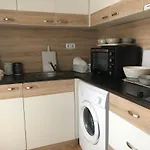 厨房还配有微波炉,洗碗机和洗衣机.这套公寓距离汽车站仅有几米的路程.